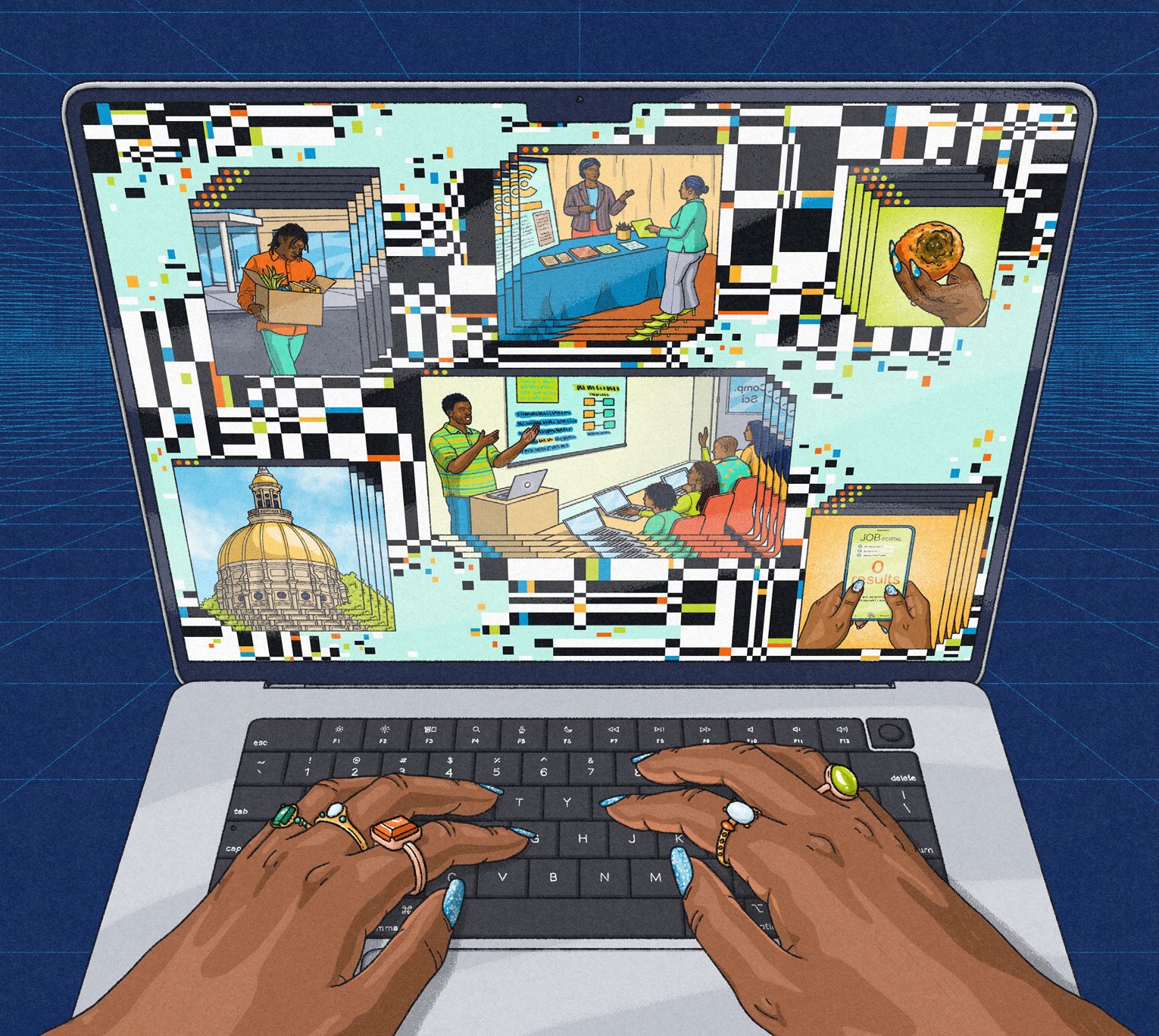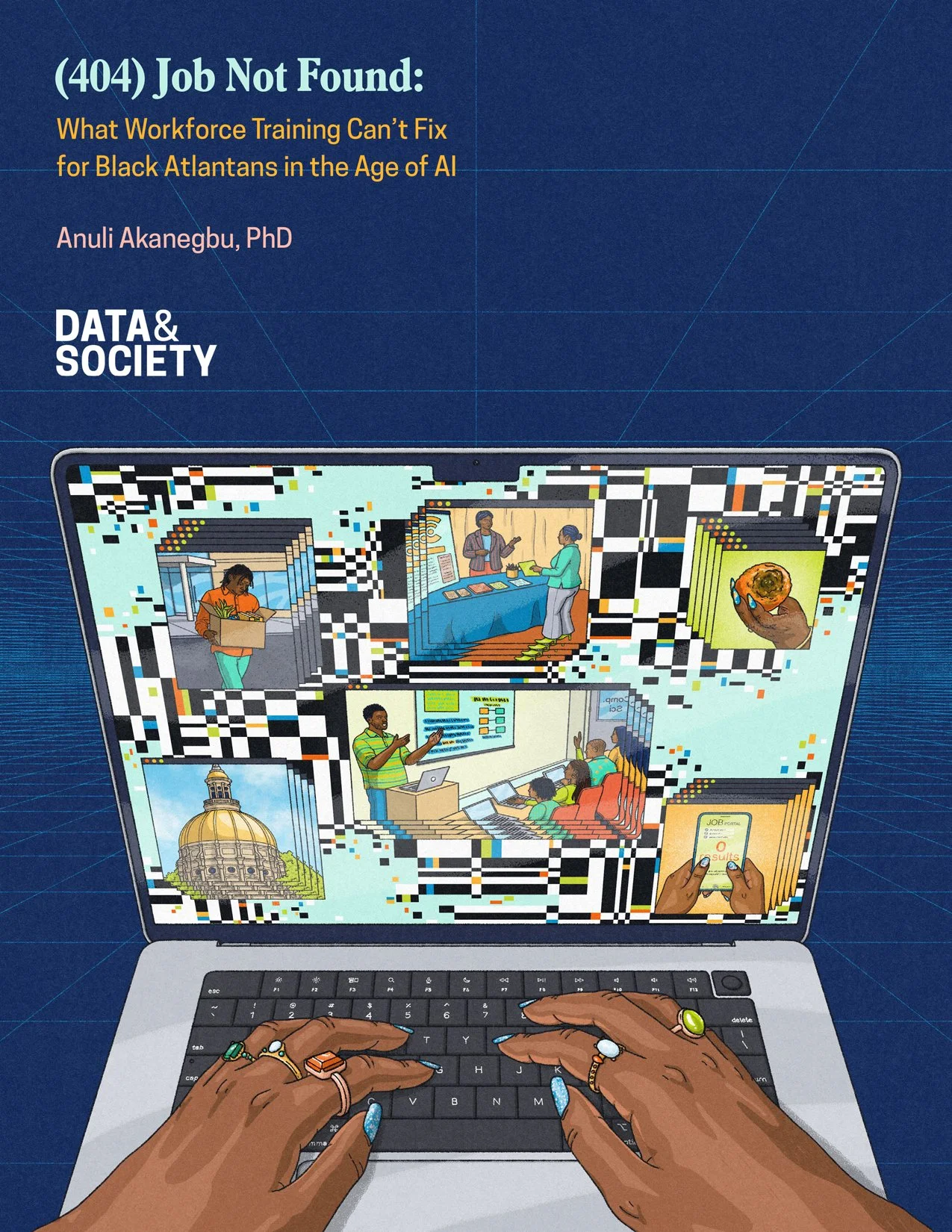 Cover illustration to accompany Data & Society’s report, "(404) Job Not Found: What Workforce Training Can’t Fix for Black Atlantans in the Age of AI," by Anuli Akanegbu, PhD, published on 4 February 2026
